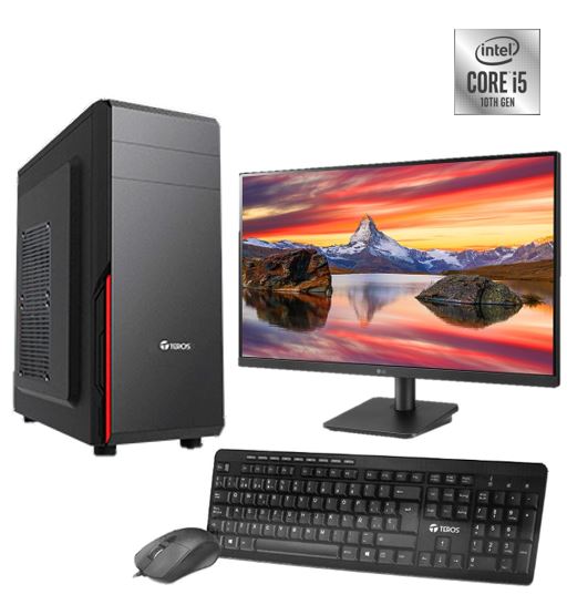 Computadora Intel Core i5 10th gen, memoria de 4GB DDR4, 1TB SATA, monitor de 20”, teclado y mouse.